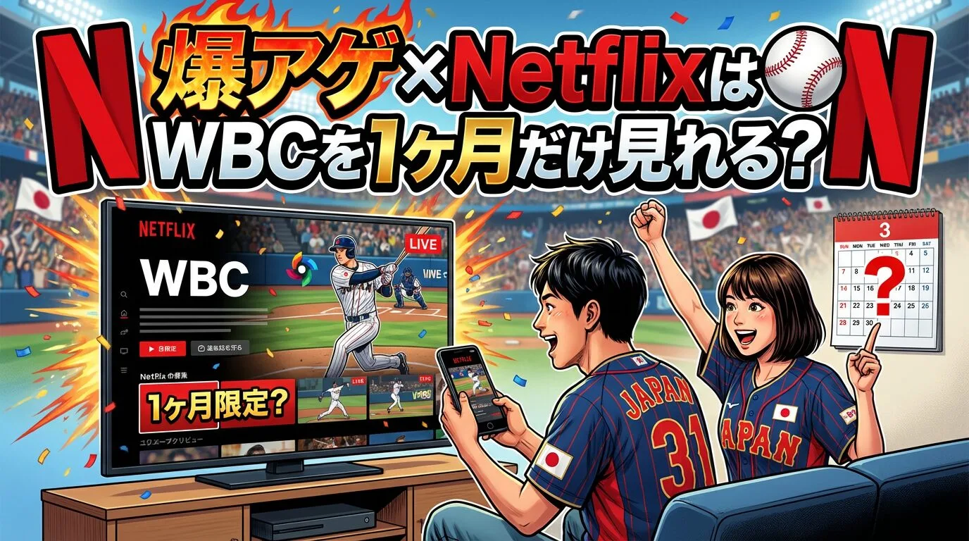2026年に開催予定のWBC(ワールド・ベースボール・クラシック)を、ドコモの「爆アゲセレクション Netflix」を利用してお得に1ヶ月だけ楽しむためには、登録と解約のタイミングが非常に重要です。