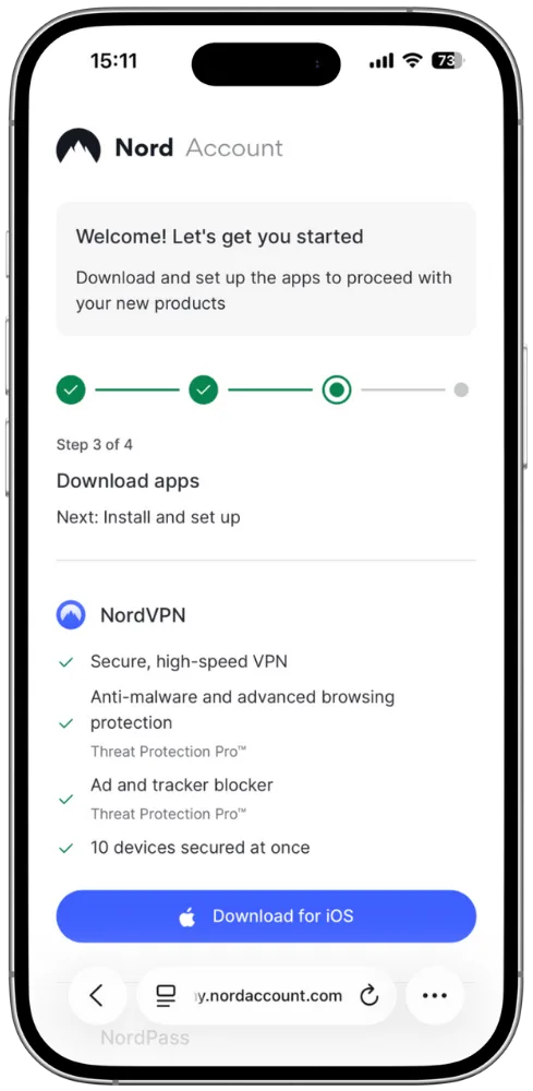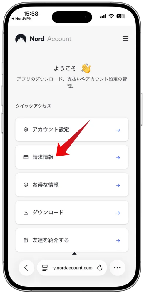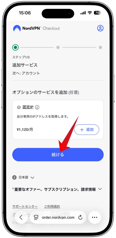 「Activate Nord Account」をタップし、NordVPNのアカウントをアクティブにするページを開きます。