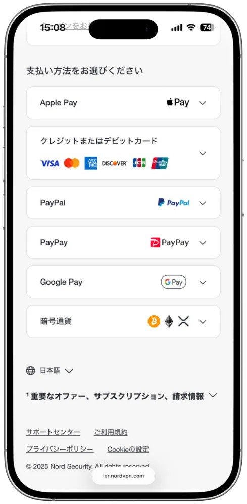 NordVPNでは、ユーザーの利便性を考慮し、多様な決済方法に対応しています。