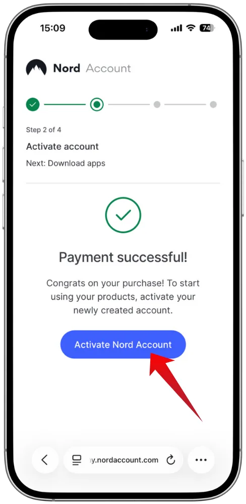 支払いが完了したら、NordVPNのアカウントをアクティブにする設定を行います。