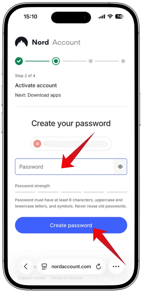 最初に設定したメールアドレスに対し、パスワードを設定してNordアカウントを作成します。