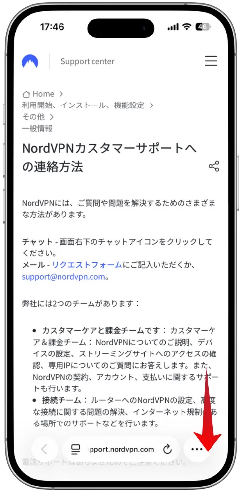 NordVPNの公式ページより、サポートページへ移動します。