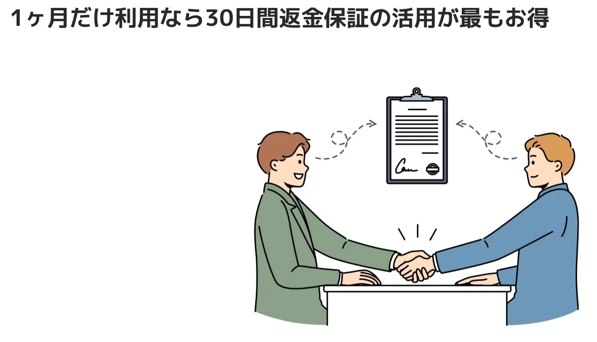なので、短期間だけ試したい場合には、「30日間返金保証」を活用する方法が最もお得です。